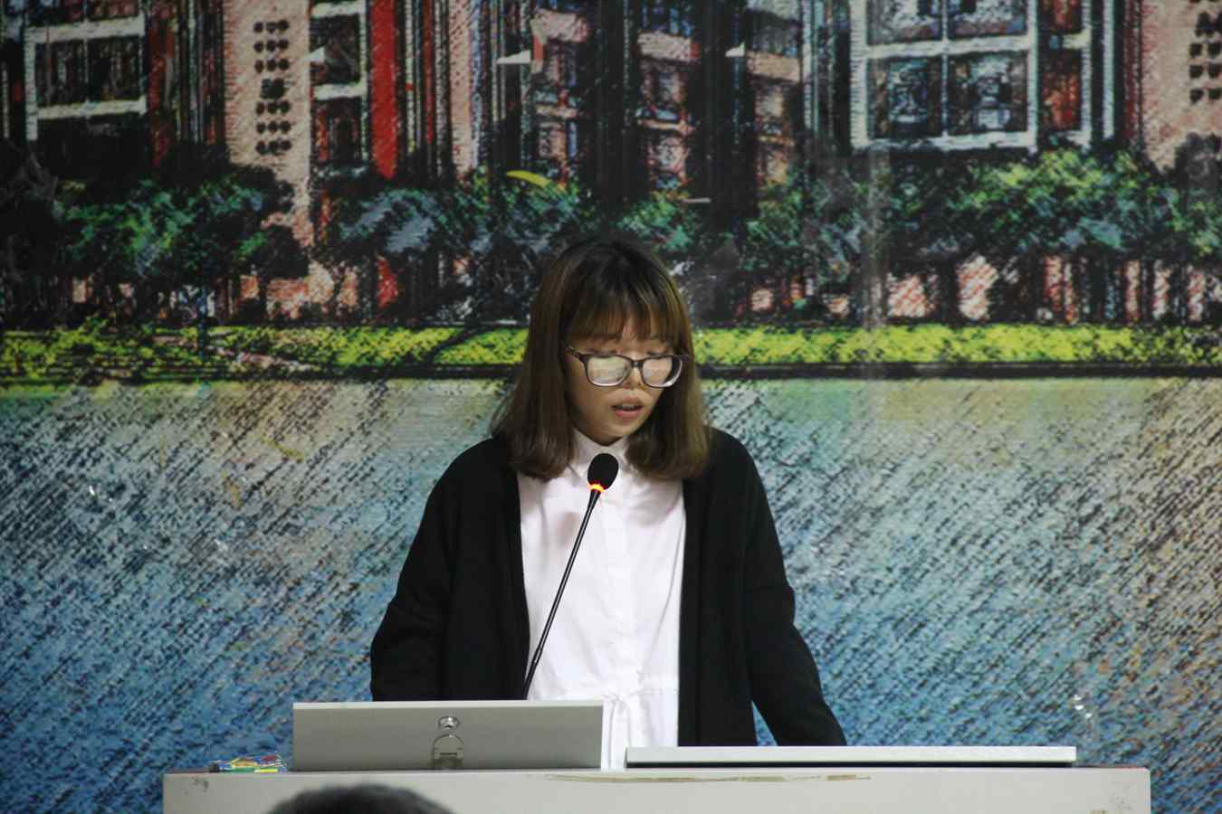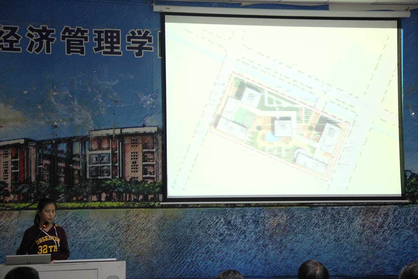 2012级的毕业生梁蕴仪今年也追随朱颖莉的脚步,从三月份开始即在奥本实习并留任工作到现在,就连她的毕业设计也是在奥本两位设计总监的指导下完成的,她的毕设最终从120余名同学的毕设方案中脱颖而出,拿到了优秀毕业设计的殊荣。当晚,梁蕴仪从自己的毕业设计作品出发,细致讲述了自己在奥本完成毕业的过程及留任工作到现在的经历。一块不大的地皮,一个貌似简单的方案,一个优秀的毕业设计,这就是她当晚发言的重点。这个其貌不扬的方案,是奥本的设计总监们“逼”她拿着建筑设计规范、一点点儿“抠”出来的精品工程,也是一个能够直接投入施工运营的实际设计项目,建筑规范之于所有设计者们来说,多少有些“带着镣铐跳舞”的感觉,而优秀的作品,无非是很好地满足了“镣铐”,又很好地发挥了自己的才情。