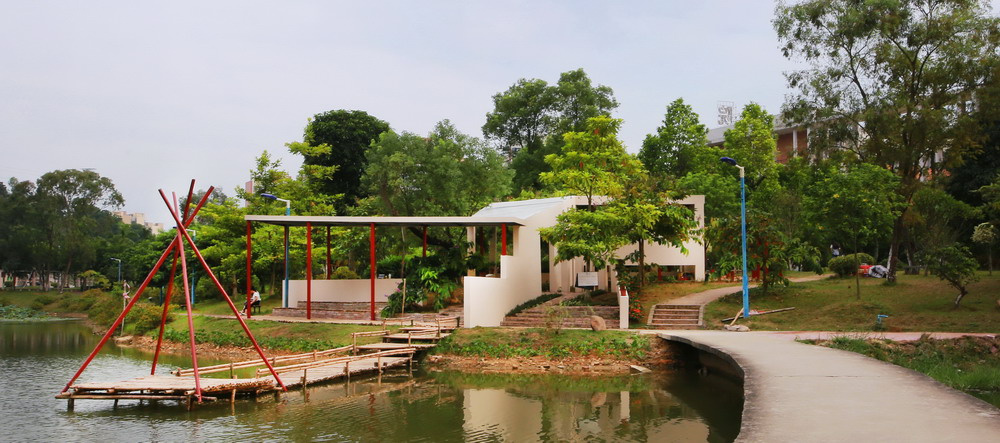 学生自主设计、建造的1:1实体景观小品“筑创轩”坐落于学校明辨湖畔,在国内同类高校中开创了大学生创新创业训练项目与校园环境相结合的先河。